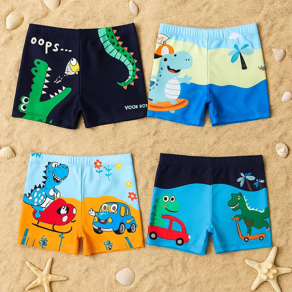 De vrolijke cartoonpatronen maken zwemmen nog leuker. Jouw kind kan zijn persoonlijkheid uitdrukken met kleurrijke en speelse ontwerpen die opvallen aan het strand of bij het zwembad.