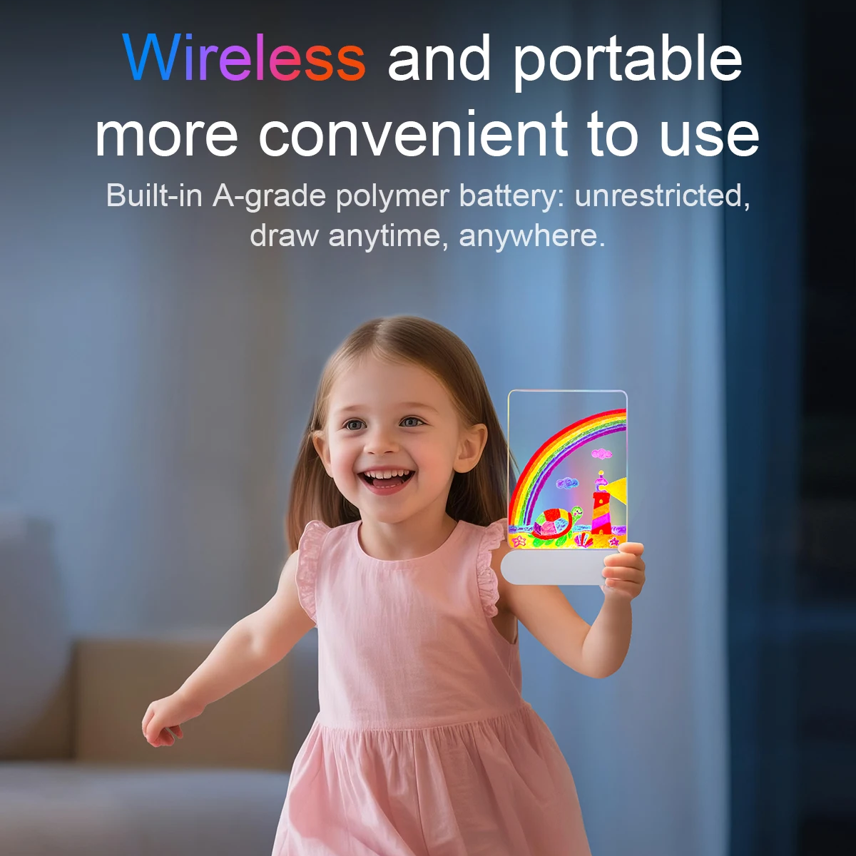 Dankzij de duurzame batterij en USB-oplaadmogelijkheid kun je de LED DrawingLight urenlang gebruiken zonder vaak op te laden. Ideaal voor lange speelsessies of als nachtlampje — zonder zorgen over stroomkosten.