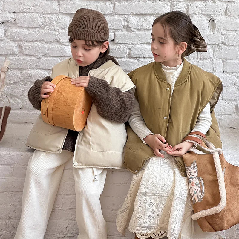 Houdt kinderen knus en stijlvol in koud weer met een veelzijdige, warme bodywarmer.