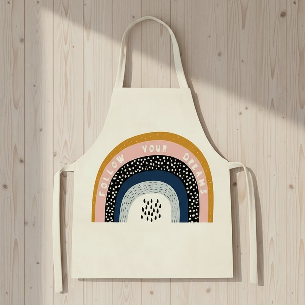 Het kleurrijke regenboog- en autoprintontwerp maakt de MiniChef™ schort niet alleen functioneel, maar ook een plezier om te dragen. Kinderen worden enthousiast om te helpen bij huishoudelijke klusjes dankzij de vrolijke prints die hun dag opfleuren.