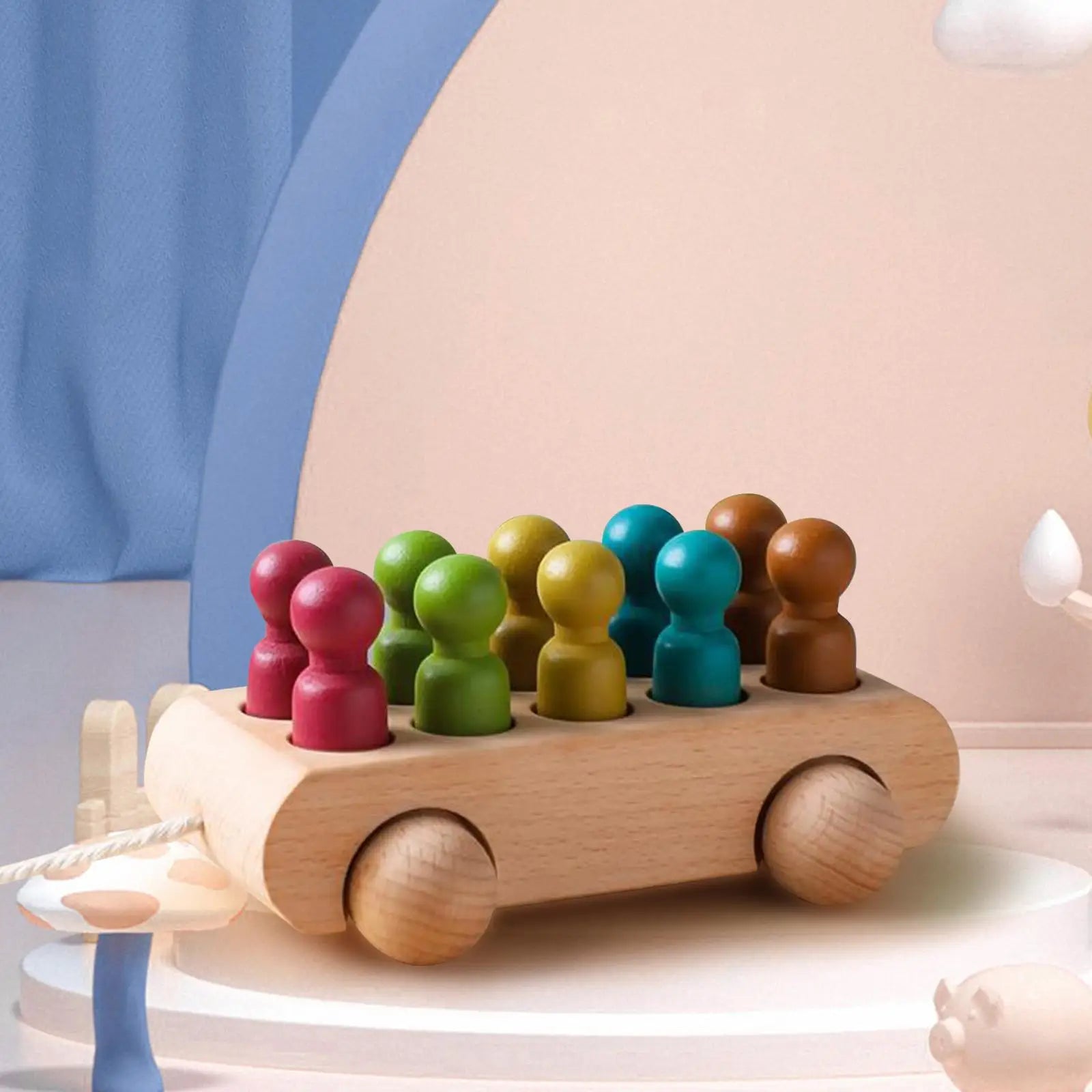 Onze houten autootjes en regenboog peg poppetjes helpen kinderen hun hand-oogcoördinatie en fijne motoriek te ontwikkelen. Terwijl ze de kleurrijke poppetjes in en uit de auto's plaatsen, verbeteren ze hun grijpkracht en precisie.