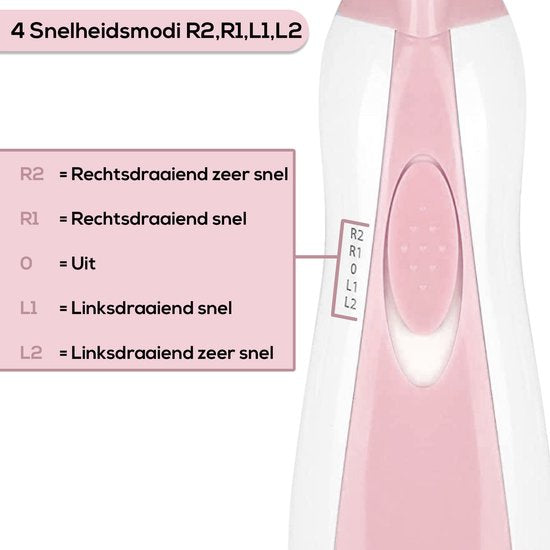 Nagelvijl, 6 opzetstukken, opbergdoos, handleiding |