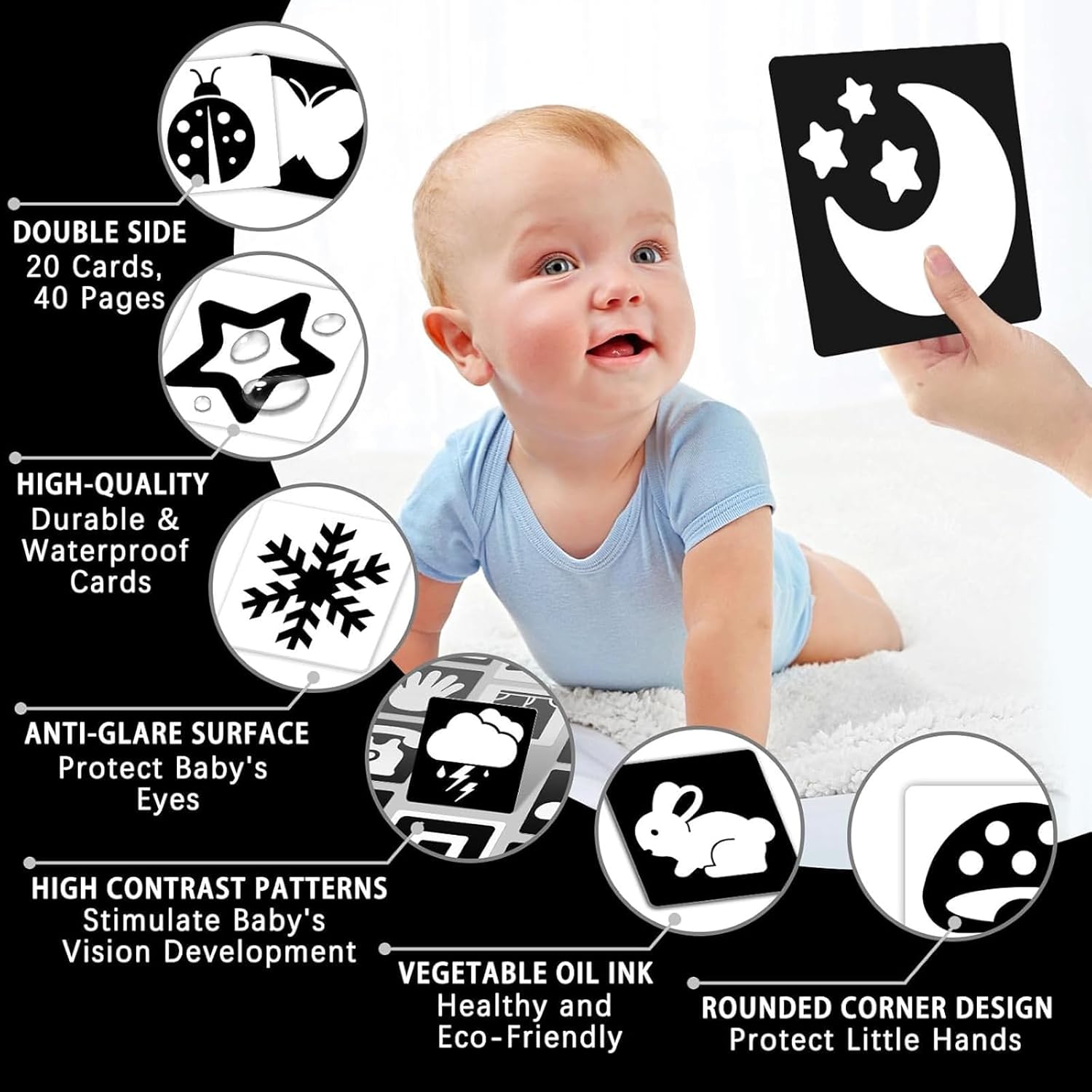 Het VisionBook stimuleert de visuele ontwikkeling van uw baby door contrastrijke afbeeldingen die de aandacht trekken en de nieuwsgierigheid prikkelen. Het bevordert ook de ontwikkeling van oog-handcoördinatie.