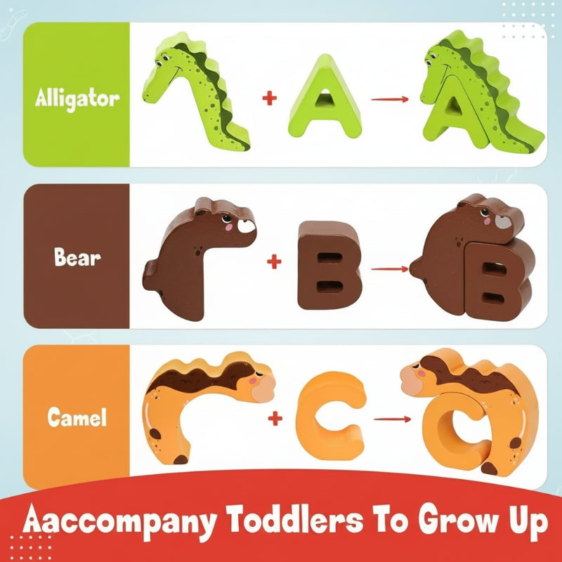 Stimuleert snel lezen, kleuren herkennen en fijne motoriek met veilige houten letters en dierenfiguren